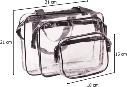 Le lot comprend une trousse petite, moyenne et grande – pour tout, des petits flacons et médicaments jusqu’aux cosmétiques ou maillots de bain. La plus grande trousse possède des poignées pratiques pour un transport confortable. Après usage, vous pouvez les emboîter pour gagner de la place au rangement.