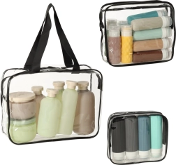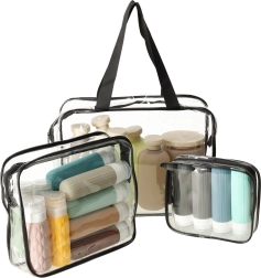 Gardez tout en ordre en voyage comme à la maison grâce à ce lot de trois organiseurs de toilette transparents. Le PVC imperméable protège le contenu de l’humidité et d’éventuelles fuites, tandis que les fermetures éclair solides maintiennent tout bien fermé. Grâce au design transparent, vous voyez immédiatement le contenu et passez facilement le contrôle de sécurité à l’aéroport.