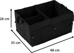 Fabriqué en polyester résistant, adapté à un usage quotidien. Des clips latéraux permettent d’ajuster la largeur ou de fixer rapidement la forme. Grâce aux poignées solides, vous pouvez transporter facilement l’organiseur, même chargé, directement du coffre à la maison.