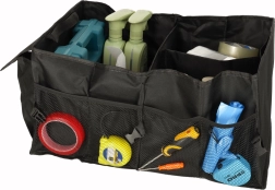 Optimisez l’espace et l’ordre dans votre coffre. L’organiseur à largeur ajustable offre de la place pour tout ce dont vous avez besoin en voiture – des bidons de liquide aux essuie-tout. Lorsque vous n’en avez pas besoin, repliez-le en quelques instants à plat et rangez-le.