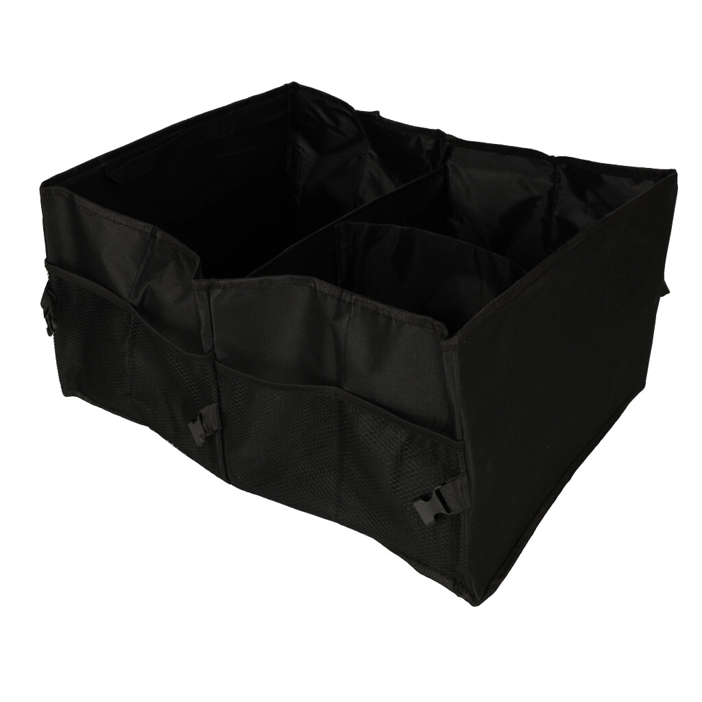 Gardez le coffre en ordre sans effort. Cet organiseur spacieux et pliable en polyester résistant offre trois compartiments principaux, des poches latérales à rabat et quatre petites poches en filet pour les accessoires. Grâce à sa structure robuste, à ses poignées pratiques et à la possibilité de le plier à plat en un instant, il est idéal pour les courses, les outils et les produits d’entretien auto.