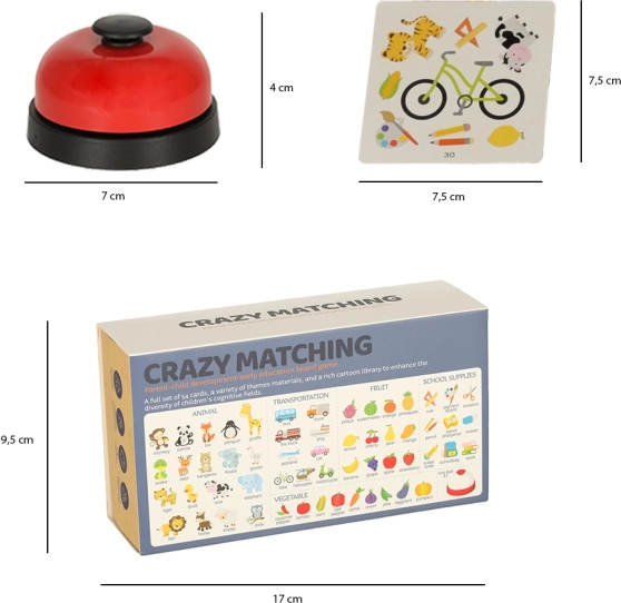 Entrez dans l’univers des réflexes rapides avec Crazy Matching, un jeu qui apporte de la joie à toute la famille. Ce jeu plein de suspense demande aux joueurs de trouver le plus vite possible l’image correspondante sur les cartes. Dans le premier mode de jeu pour deux joueurs, distribuez toutes les cartes et, à chaque manche, essayez d’être le premier à trouver une correspondance entre deux cartes. Le gagnant est le joueur qui a le plus de cartes.