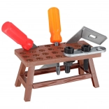 Un établi en plastique stable avec plateau perforé, serre-joint et supports d’outils crée un environnement de travail amusant pour chaque petit bricoleur.