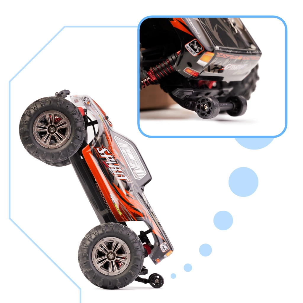 Suspension souple et châssis solide absorbent les chocs et protègent le modèle en cas de collision. Prête pour un plaisir intensif dehors comme dedans.