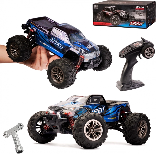 Voiture RC rapide et robuste à l’échelle 1:16 avec moteur brushless, vitesse maximale jusqu’à 52 km/h et commande 2,4 GHz. Grâce à ses grands pneus tout-terrain et à un contrôle précis, profitez de la conduite à la maison comme en extérieur. La batterie rechargeable 7,4 V / 1000 mAh assure de longues heures de jeu, tandis que la construction robuste résiste aux chocs.