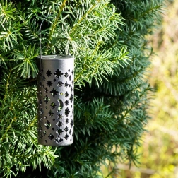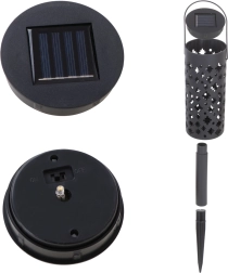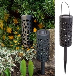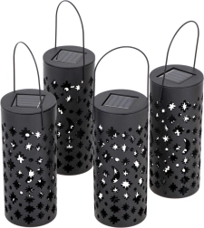 Il suffit de piquer ces lanternes de jardin solaires dans la terre ou de les suspendre à une branche et de les laisser se recharger au soleil pendant la journée. La batterie intégrée et le capteur crépusculaire garantissent que les lumières s’allument automatiquement exactement au moment où vous en avez besoin. Les perforations décoratives créent, une fois allumées, de spectaculaires motifs d’étoiles et de lune.