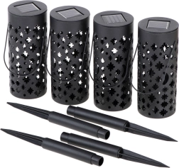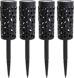 Apportez une atmosphère féerique à votre jardin avec ce lot de 4 lanternes LED solaires. Sans câbles, allumage automatique à la tombée de la nuit grâce au capteur, fonctionnement économe et motifs lumineux décoratifs d’étoiles et de lune pour transformer allées, massifs ou terrasse en un lieu chaleureux.