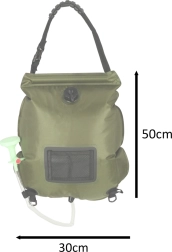 Cette douche pratique est équipée d'une poignée confortable pour un transport et une suspension faciles, d'un couvercle amovible pour une fermeture sécurisée et d'une poche frontale pour de petits accessoires comme du shampoing ou du gel douche. Un thermomètre est également inclus pour vous permettre de vérifier si l'eau est à la température idéale.