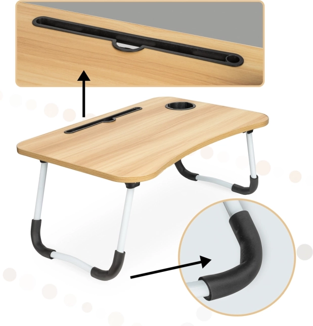 Cette table est non seulement pratique, mais aussi multifonctionnelle. Vous pouvez l'utiliser comme bureau portable pour dessiner ou préparer des cours. Elle est indispensable aussi comme plateau pour servir le petit-déjeuner au lit. Et si vous n'en avez pas besoin, pliez-la et rangez-la facilement, car elle prend très peu de place.