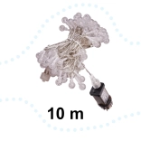 L’indice de protection IP44 permet une utilisation également dans les espaces extérieurs couverts. L’alimentation sur secteur assure un fonctionnement stable et le connecteur pratique permet de brancher une autre guirlande.