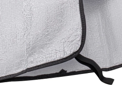 Cette housse de protection pratique pour pare-brise ou lunette arrière réduit efficacement la surchauffe de l’habitacle en été et empêche en hiver le dépôt de givre et de neige. La surface réfléchissante renvoie les rayons solaires tandis que, par temps froid, la couche thermo-isolante agit comme une barrière contre le gel.