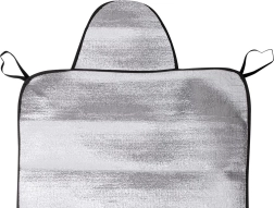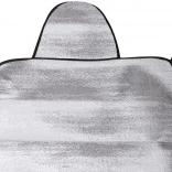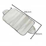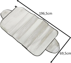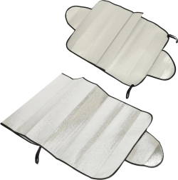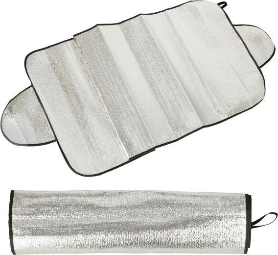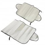 Pare-soleil universel pour pare-brise ou lunette arrière protégeant le véhicule du soleil, des UV, du givre et de la neige. Se monte facilement en coinçant les bords latéraux dans les portes, il est léger, pliable et fabriqué en matériau imperméable avec couche thermo-isolante.