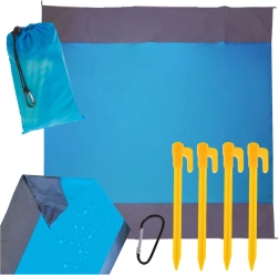 Personne n'aime quand le vent se lève et soulève les coins de la couverture, dispersant du sable sur tout ce qui y est posé. Ajuster sans cesse la couverture n'est pas très confortable non plus. Tout a été soigneusement pensé avec cette couverture de plage - le kit comprend 4 piquets simples qui vous permettent de fixer la couverture au sol !