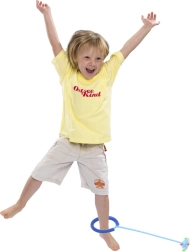 Le jeu est intuitif : passez l’anneau autour de la cheville, faites-le tourner et, avec l’autre pied, sautez par‑dessus la corde avec la balle. Un excellent défi pour enfants et adultes – qui fera le plus de rotations ou ira le plus vite ?