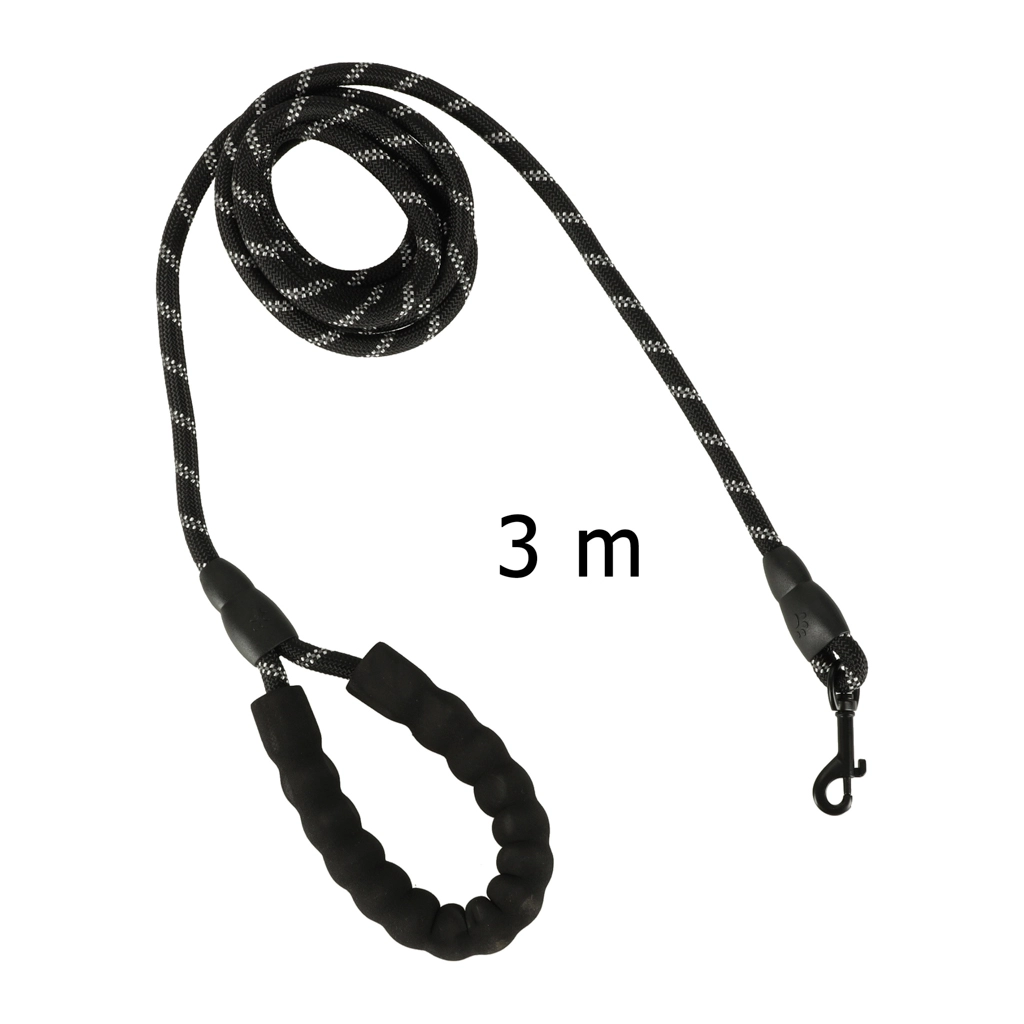Laisse fiable en corde résistante avec mousqueton pivotant chromé, adaptée aux races moyennes à grandes. Grâce à sa longueur de 3 mètres, votre chien bénéficie d’une liberté suffisante tandis que vous gardez un contrôle parfait. Les coutures réfléchissantes augmentent la visibilité au crépuscule et dans l’obscurité, ce qui en fait un choix sûr pour les sorties quotidiennes.