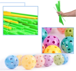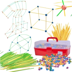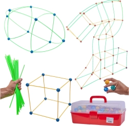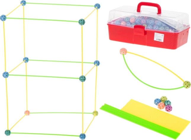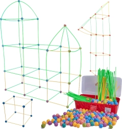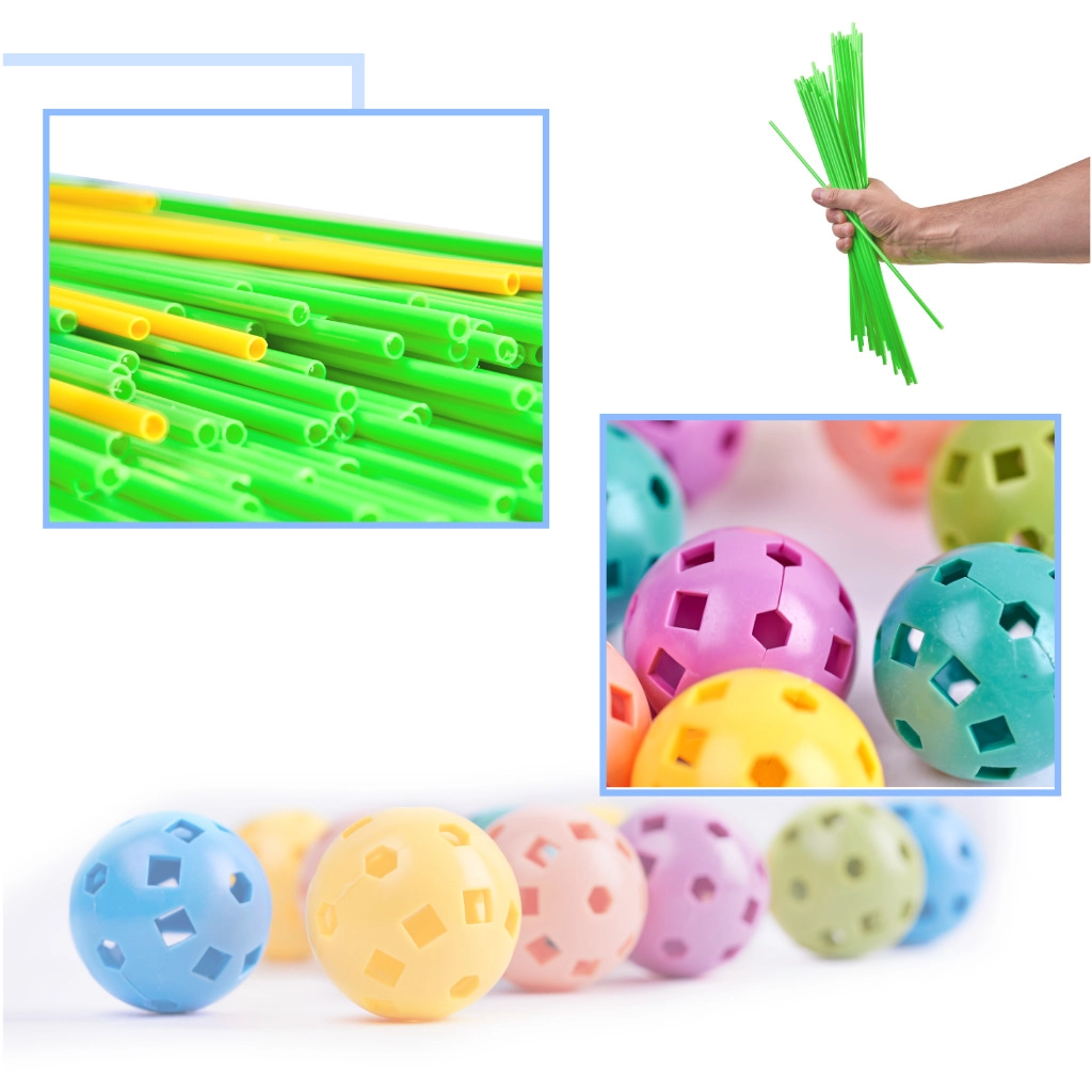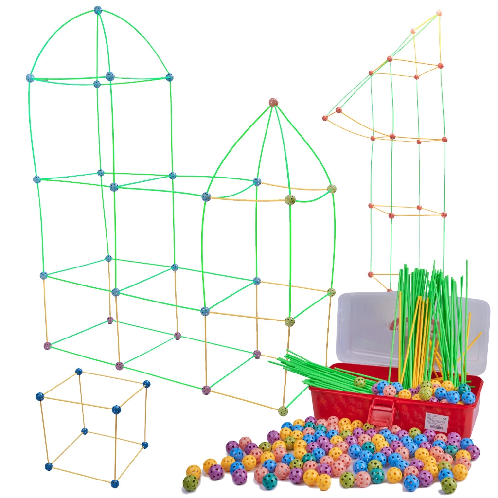 Ce jeu de construction associe de longues tiges en plastique à des boules perforées robustes, dotées de nombreux trous pour un clipsage facile. Les enfants peuvent créer des structures 3D — de petites maisons et tentes à des tunnels et forteresses — sans limites à l’imagination. Les pièces sont légères, sûres et réutilisables.