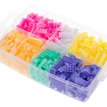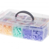 Une boîte transparente avec compartiments permet de ranger et de trier facilement les blocs par couleur.