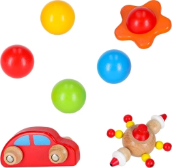 • Riche assortiment – 4 billes colorées, une petite voiture en bois et des figurines pour un jeu varié.