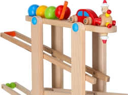 Toutes les pièces sont soigneusement poncées pour une prise en main sûre par les petites mains. Les courses développent la coordination œil-main, la compréhension de la cause et de l’effet ainsi que la patience. Le set est livré en kit de montage facile, avec tout le nécessaire dans la boîte, y compris des billes colorées et une petite voiture en bois.