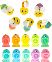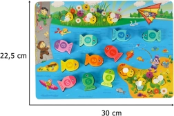 Ce set Montessori créatif propose trois façons de jouer : pêcher les poissons aimantés avec une canne, insérer les poissons numérotés dans les bonnes ouvertures et entraîner la motricité fine avec les abeilles à l’aide d’une pince. Les éléments multicolores motivent à jouer, tandis que la fabrication en bois de qualité, aux bords arrondis, garantit la sécurité.