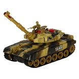 Le char RC en version désert offre une conduite fluide avant/arrière, des virages sur place et une tourelle rotative à 180° de chaque côté (soit un secteur de tir total de 360°). Les chenilles en caoutchouc souple assurent une bonne adhérence sur différents terrains. Lors du tir, le char simule un recul réaliste avec sons moteur et tir.