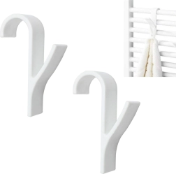 L'installation se fait sans perçage ni outils – il suffit d'accrocher le crochet sur un barreau horizontal du radiateur. Sa fabrication en plastique résistant est légère, solide et facile d'entretien. La couleur blanche neutre convient aux intérieurs modernes comme classiques.
