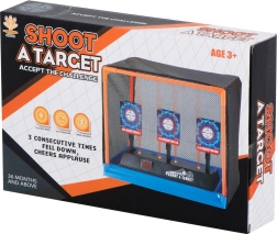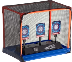 La cible électronique de tir est un excellent jouet pour les enfants comme pour les adultes souhaitant entraîner leur précision et la coordination œil-main. Après chaque impact, les cibles se rabattent ; une fois les trois abattues, elles se relèvent automatiquement et un point est ajouté sur l’écran LED. Compatible avec fléchettes et billes en mousse.