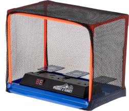 Des effets lumineux et sonores interactifs (applaudissements, bruit de verre brisé) ajoutent tension et ambiance à la partie. Grâce au filet de protection, les projectiles restent à l’intérieur, pour jouer en toute sécurité à la maison et ranger rapidement.
