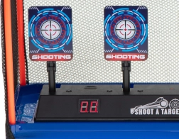L’écran LED compte les points et, une fois les trois cibles abattues, elles se relèvent automatiquement – un jeu d’action fluide sans réglage manuel.