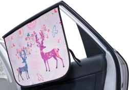 Ce rideau magnétique double couche pour vitre latérale offre un soulagement immédiat contre le soleil intense et la chaleur. D’un côté, un motif coloré avec des rennes, de l’autre, l’inscription contrastée « Go out and enjoy the sunshine » sur fond noir. Grâce au polyester de qualité, le pare-soleil est résistant, facile à nettoyer et garantit une occultation complète.