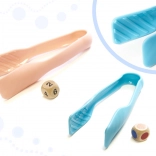 Deux paires de pinces aident à développer la bonne prise et la coordination œil–main lors du transfert des oursons vers les gobelets ou lors de la réalisation des tâches des cartes.