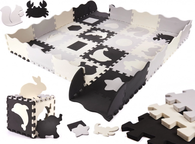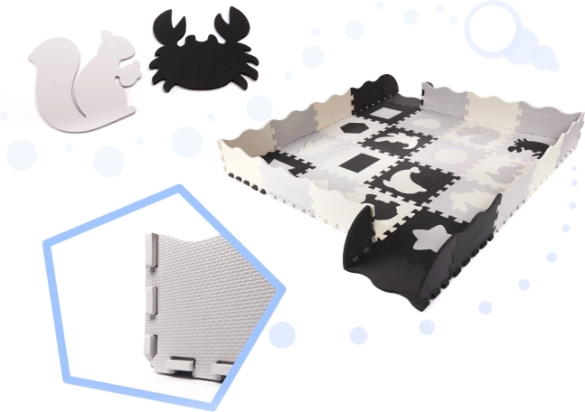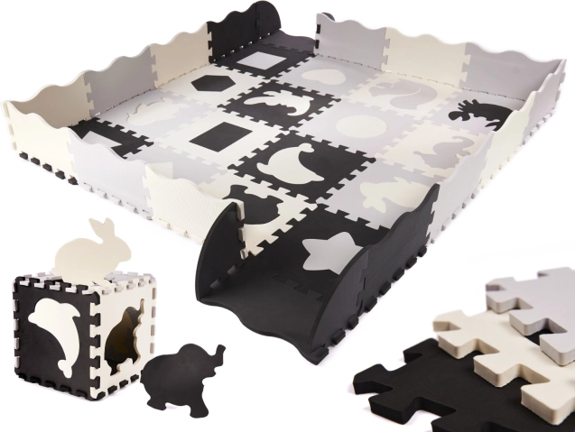 Découvrez des possibilités infinies de divertissement avec le tapis puzzle éducatif ! Ce grand tapis puzzle en mousse avec des éléments amovibles aux couleurs contrastées est idéal pour les jeunes enfants qui découvrent le monde des formes et des couleurs.