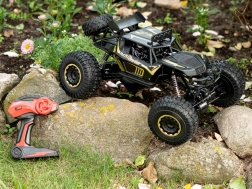 Énorme rock crawler RC à l’échelle 1:8 avec carrosserie métallique, transmission 4x4 et roues de 12,5 cm de diamètre offrant une capacité de franchissement maximale, une construction durable et un pilotage 2,4 GHz sans interférences. Grâce à son éclairage LED, profitez de la conduite au crépuscule, tandis que la radiocommande pistolet ergonomique assure un contrôle précis sur l’herbe, les rochers et les terrains accidentés.