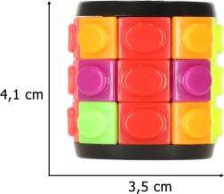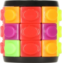 Découvrez un défi captivant au format compact. Les anneaux rotatifs du cylindre permettent de déplacer les pièces colorées en douceur et, grâce à un espace libre dans une rangée, de créer de nouvelles combinaisons. L’objectif est de trier les couleurs par rangées – une tâche en apparence simple qui se transforme vite en divertissement de casse-tête pour de longues heures.
