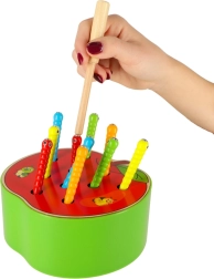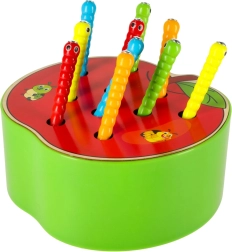 Un jeu en bois amusant pour les enfants, où ils attrapent des chenilles colorées cachées dans une petite pomme à l’aide d’une baguette magnétique. Favorise la motricité fine, la coordination œil–main, la concentration et la patience. Sa fabrication en bois de qualité avec une baguette magnétique et 10 chenilles colorées est idéale pour un jeu éducatif inspiré des principes Montessori.