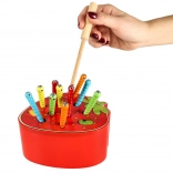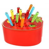 Jeu moteur en bois amusant en forme de fraise, où les enfants attrapent des chenilles colorées à l’aide d’une baguette magnétique. Développe la motricité fine, la coordination œil-main, la concentration et la patience. Conception sûre, base solide et design attrayant pour un jeu quotidien.