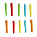 Comprend une base en bois en forme de fraise, 10 chenilles colorées avec extrémité métallique et une baguette magnétique en bois.