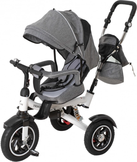 Tricycle pour enfants moderne 3-en-1 TRIKE FIX V3 qui grandit avec l’enfant de 1 à 6 ans et combine les avantages de la poussette et du vélo. Grâce au siège pivotant à 360°, à la barre de guidage parentale et aux roues sans chambre à air sans entretien, il offre une conduite sûre et confortable sur toutes les surfaces. Le dossier réglable, la capote avec fenêtre en maille et les ceintures 2 points assurent confort et sécurité lors des promenades.