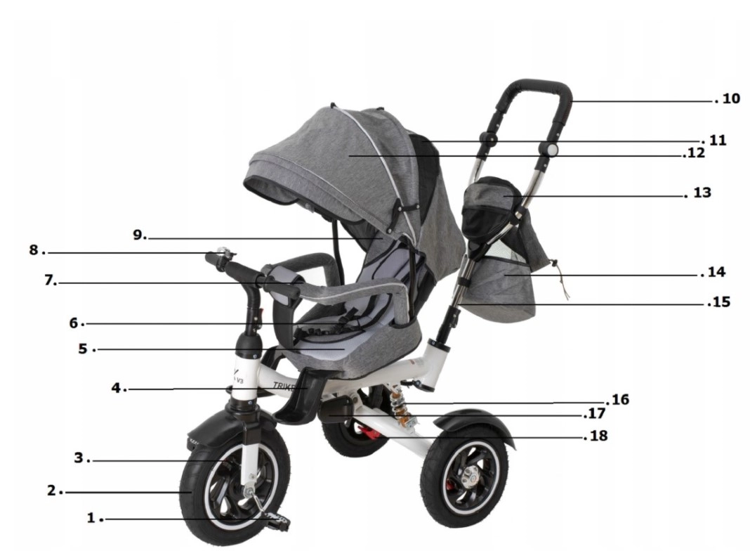 - 3-en-1 – poussette, tricycle guidé par le parent, tricycle autonome.
