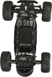 Modèle tout-terrain RC à l’échelle 1:12 avec transmission intégrale 4x4 permanente, châssis métallique et suspension à ressorts indépendante, idéal pour sentiers rocheux, sable et herbe. Deux moteurs sur les essieux assurent une forte motricité et traction, les grandes roues franchissent les obstacles en douceur et la radiocommande 2,4 GHz offre une portée stable jusqu’à 50 m.