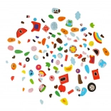 Le tableau contient environ 100 pièces magnétiques variées qui encouragent la créativité et la création.