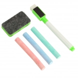 Le kit comprend tout le nécessaire, y compris des craies de couleur, une éponge et des marqueurs avec feutre pour un divertissement complet.
