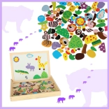 Ce tableau double face offre de nombreuses possibilités pour stimuler la créativité des enfants. Sur la face blanche magnétique, ils peuvent assembler des puzzles colorés ou dessiner avec un feutre, tandis que la face noire à craie est destinée au dessin classique à la craie.