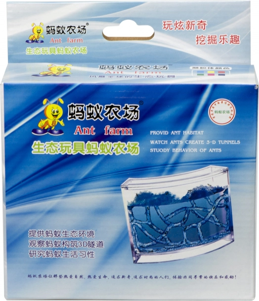 Cet aquarium éducatif pour fourmis est rempli d’un gel bleu spécial non toxique qui offre aux fourmis un milieu propice au creusement de tunnels tout en leur servant de nourriture. Il suffit de faire quelques trous de démarrage dans le gel, d’introduire quelques fourmis et vous pouvez observer leur travail à l’œil nu et l’évolution de la structure interne de la colonie.