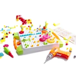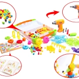Ce jeu astucieux relie amusement et apprentissage. À l’aide de la perceuse jouet à piles ou du tournevis, les enfants vissent facilement des vis colorées dans la plaque perforée et assemblent différents motifs, animaux ou véhicules. Les couleurs vives aident à apprendre les couleurs et les formes, tandis que le vissage en lui-même renforce l’agilité des doigts et la coordination œil-main.