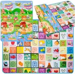 Ce tapis de jeu double face offrira aux enfants un espace sûr et confortable pour jouer et apprendre au quotidien. Ses dimensions généreuses de 180 × 120 cm et sa mousse souple protègent du froid du sol et amortissent efficacement les petites chutes. Une face est remplie de lettres pour faciliter l'apprentissage de l'alphabet, l'autre présente un décor féerique avec des animaux qui stimule l'imagination.