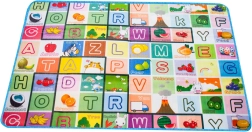 Un tapis pratique et ludique pour les enfants qui allie jeu et apprentissage. Une face présente l'alphabet, l'autre un monde féerique avec des animaux. Grâce à sa matière souple, le tapis isole du froid, amortit les chutes et se nettoie facilement – il suffit de l'essuyer avec un chiffon humide. Pliable et léger, idéal pour la chambre d'enfant.