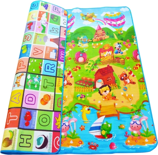 Stimulez l'apprentissage et l'imagination. Un côté du tapis aide à reconnaître les lettres, l'autre offre un paysage pittoresque peuplé d'animaux pour des jeux créatifs.