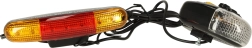 Ce kit complet combine éclairage avant et arrière avec clignotants et un klaxon pratique. En mode nuit, les deux feux s’allument ; le mode jour est conçu pour accroître la visibilité en plein jour. L’interrupteur coulissant active facilement le clignotant gauche ou droit, la position centrale le désactive.