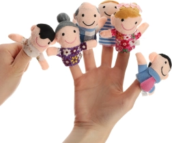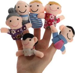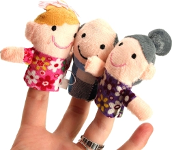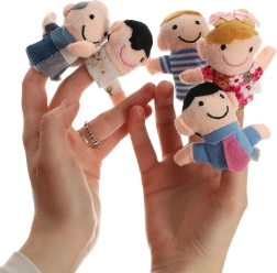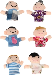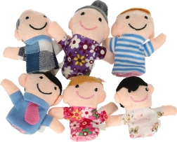 L'ensemble de marionnettes à doigts comprend six personnages colorés représentant des membres de la famille : le père, la mère, le grand-père, la grand-mère, la fille et le fils. Ces marionnettes se placent facilement sur les doigts et sont conçues pour être amusantes et simples à utiliser même pour les enfants.